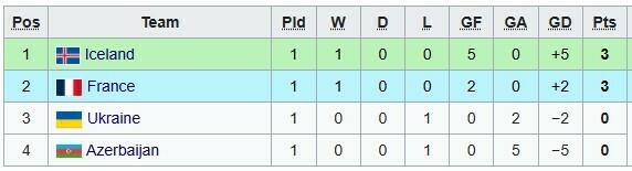 У першому турі Україна поступилася Франції (0:2), а Азербайджан зазнав фіаско у грі з Ісландією (0:5).