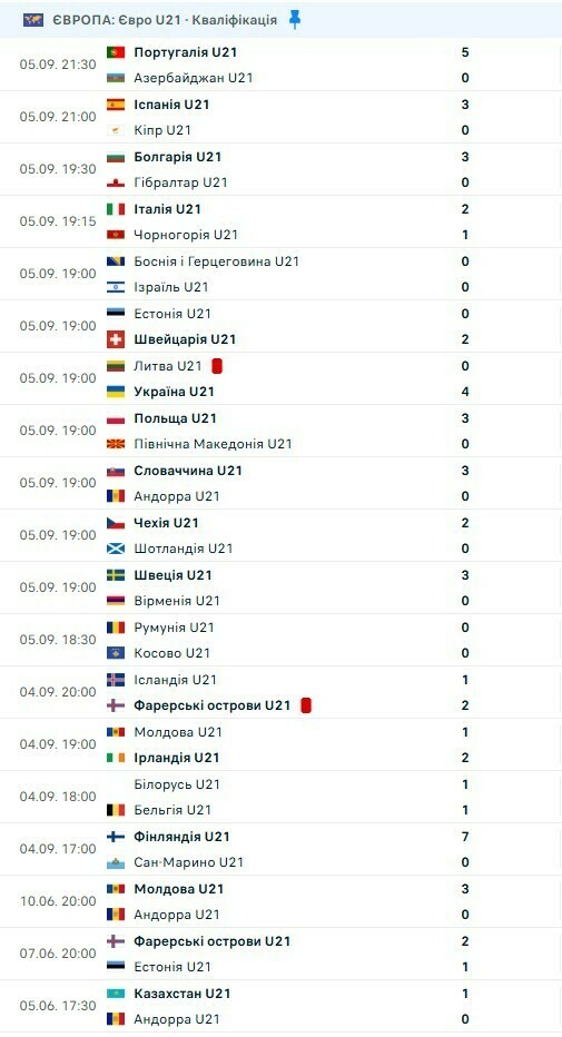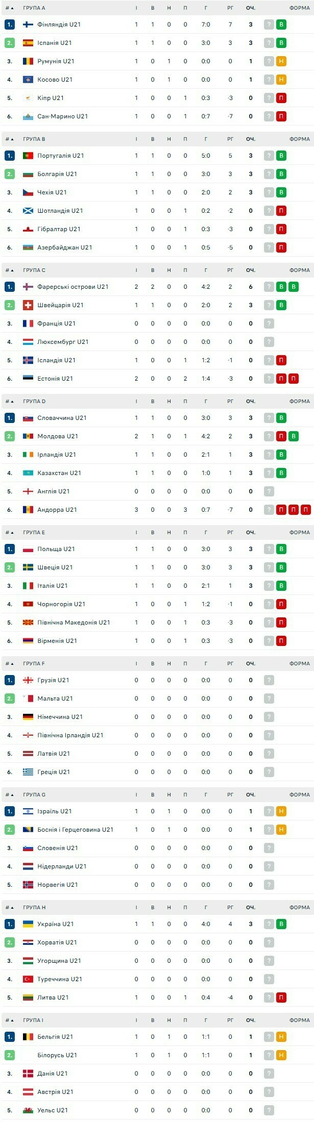 Турнірні таблиці кваліфікації Євро-2027 U-21. Україна лідирує у групі