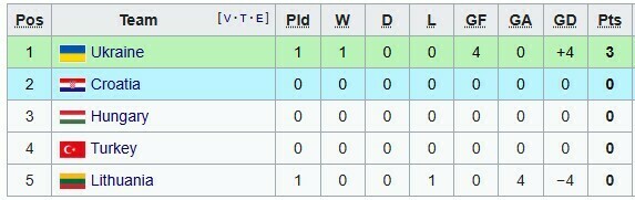 Українська команда набрала перші 3 очки та очолила групу, де також виступають Хорватія, Угорщина, Литва та Туреччина.
