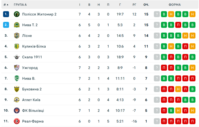 Команди Другої ліги провели поєдинок 7-го туру