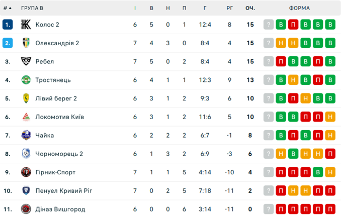 Турнірні таблиці