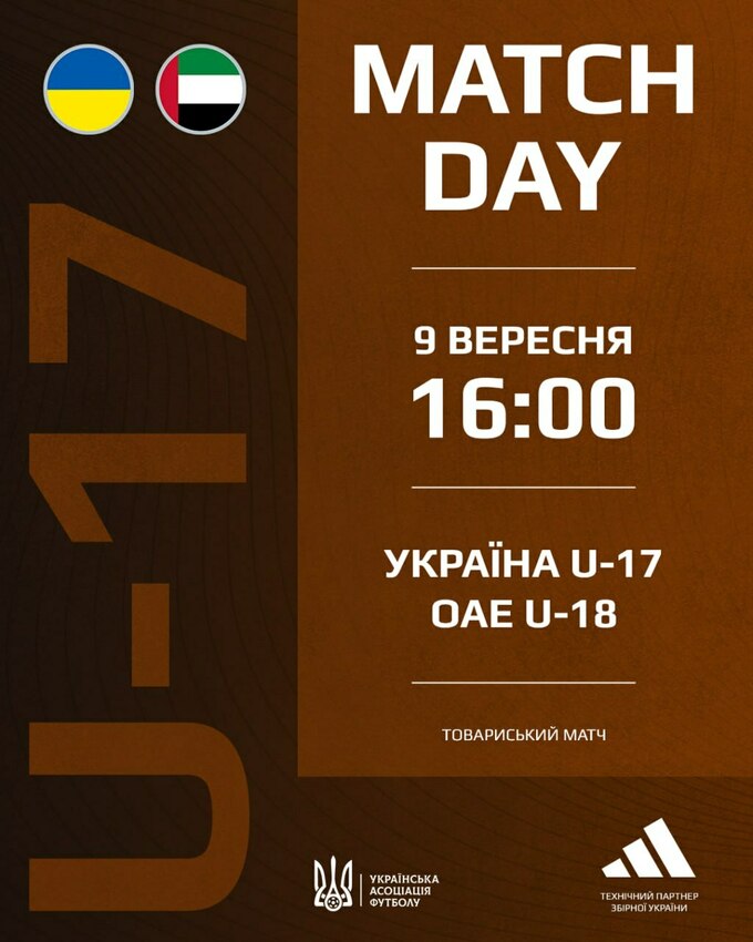 9 вересня о 16:00 в матчі 3-го туру юнацького турніру грають Україна U-17 та ОАЕ U-18.