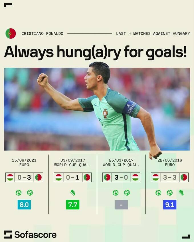 Роналду в останніх 4 матчах проти угорців відзначився 6 забитими м'ячами та 2 результативними передачами. Три поєдинки завершилися перемогою португальців (3:0, 1:0, 3:0), один – нічиєю (3:3).