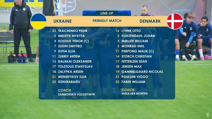 Перший тайм проходив під помітним контролем данців, які створили кілька небезпечних моментів біля воріт українців. Вирішальною стала 13-та хвилина, коли після стандарту з лінії штрафного Ніколас Хаммельгард точним ударом у дев’ятку відкрив рахунок.