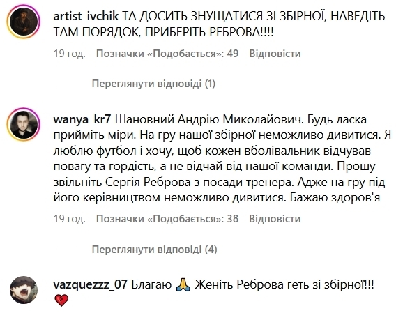 ФОТО. Фани атакують Шевченка у Instagram. Просять звільнити Реброва