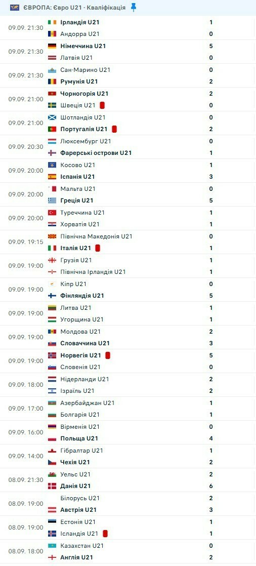9 вересня відбулися матчі відбіркового турніру Євро-2027 U-21 у групі Н, де виступає молодіжна збірна України.