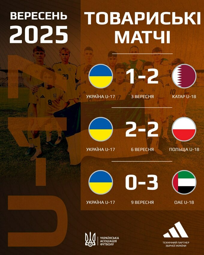 - 1-й тур. 04.09.2025. Україна U17 – Катар U18 – 1:2