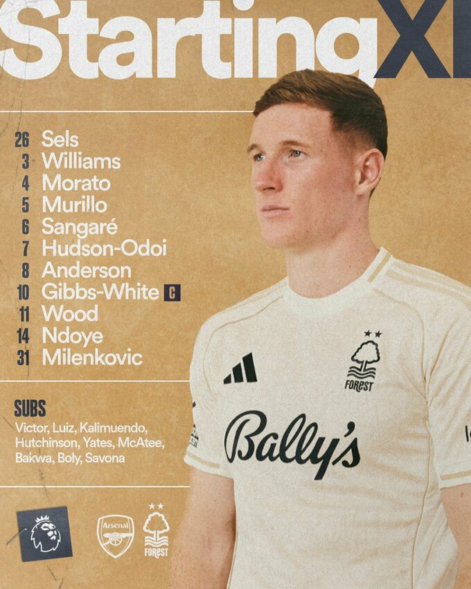 Український захисник Ноттінгем Форест Олександр Зінченко не включений до заявки, оскільки Арсенал не дозволяє грати орендованому футболісту проти своєї команди.