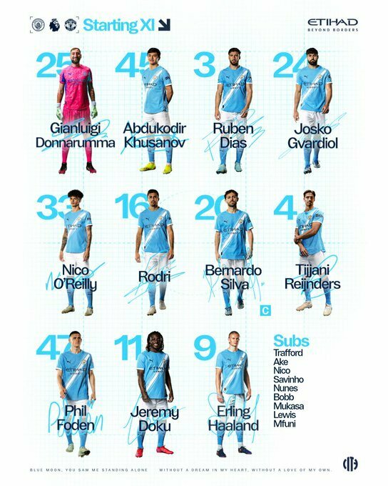 «Манчестер Сіті»: Доннарумма – О’Райлі, Гвардіол, Діаш, Хусанов – Рейндерс, Родрі (Ніко Гонсалес, 76), Сілва (Аке, 88) – Доку (Савіо, 77), Голанд (Бобб, 87), Фоден.