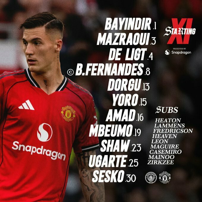 Манчестер Юнайтед: Байиндир, Йоро, Де Лігт, Шоу, Мазрауї, Угарте, Фернандеш, Доргу, Амад, Мбемо, Шешко.