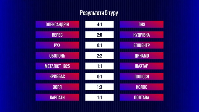 З 12 до 14 вересня відбувся 5-й тур Української Прем’єр-ліги 2025/26.