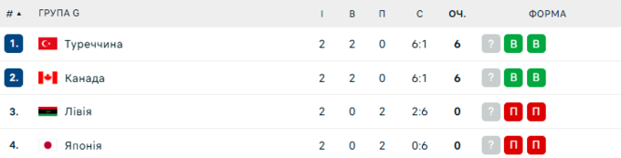 Таким чинном Туреччині стала першою командою, яка гарантувала собі місце у плей-оф, після того як у першому турі вона перемогла Японію. Іншим учасником 1/8 фіналу з групи G стала Канада, яка неочікувано розібралася з Японією у трьох сетах.