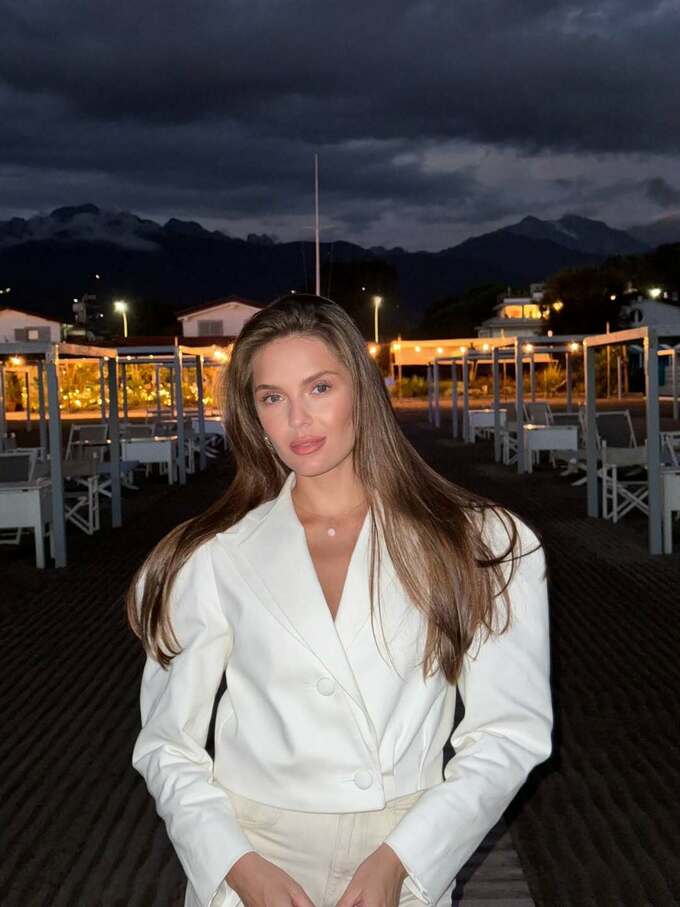 Анастасія з'явилася в білосніжному жакеті та брюках, які підкреслили її фігуру та бездоганний стиль.
