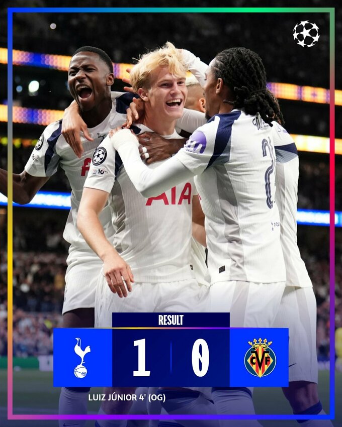 | 5 | Тоттенхем | 1 | 1 | 0 | 0 | 1 - 0 | 30.09.25 22:00 Буде-Глімт - Тоттенхем16.09.25 Тоттенхем 1:0 Вільярреал | 3 | |