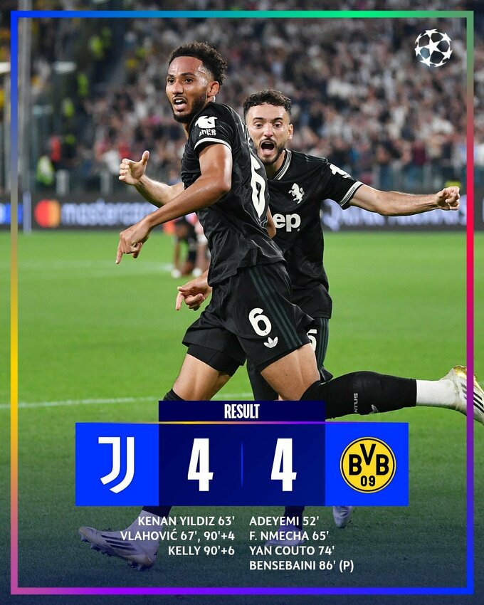 22:00 Ювентус (Італія) – Боруссія Д (Німеччина) – 4:4