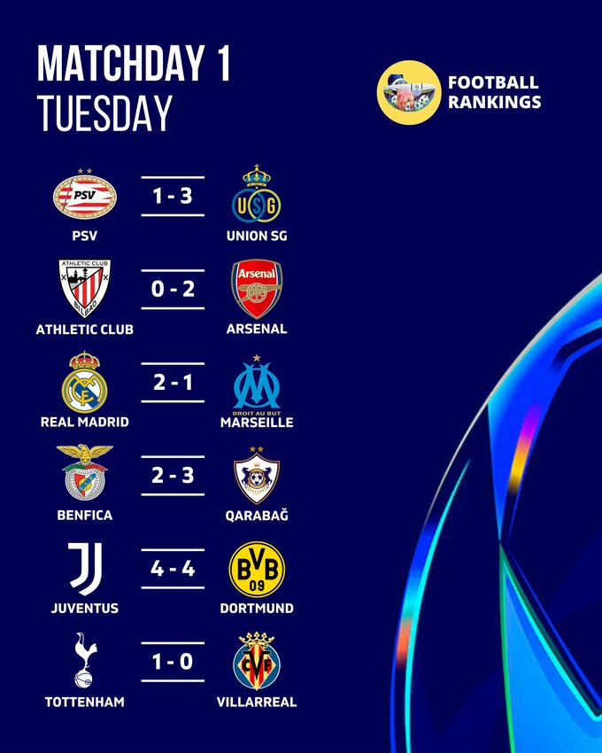 Також по 3 очка на старті турніру здобули англійські команди Арсенал, Тоттенхем та бельгійський Юніон Сен-Жилуаз.