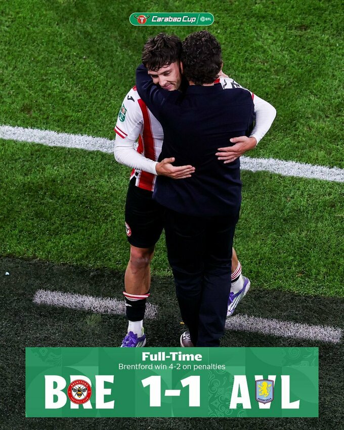 Брентфорд у серії післяматчевих пенальті пройшов Астон Віллу. Основний час гри завершився з рахунком 1:1, а в серії точнішими виявилися бджоли – 4:2.
