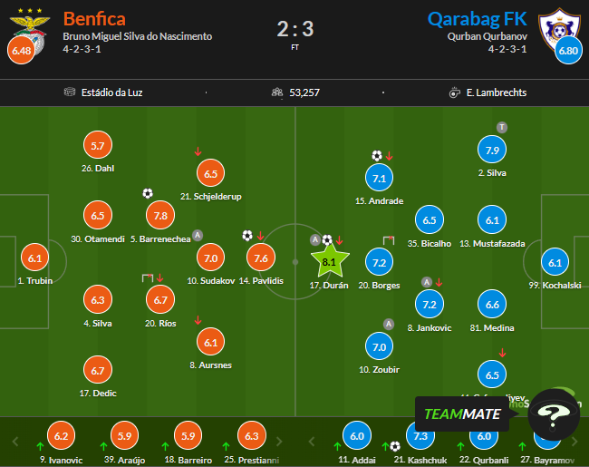 Оцінки WhoScored за матч Бенфика – Карабах (2:3)