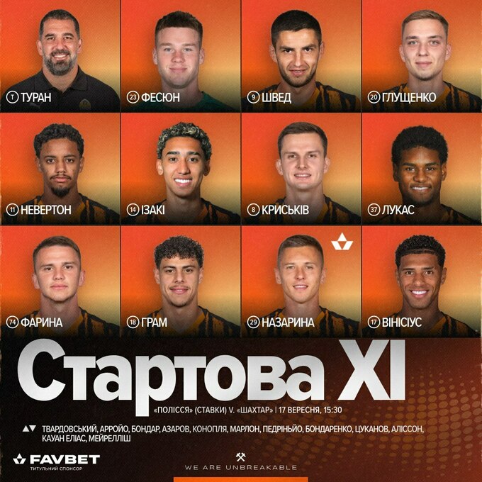 Запасні: Твардовський, Арройо, Азарові, Конопля, Марлон Гомес, Педріньйо да Сілва, Бондаренко, Цуканов, Еліас.
