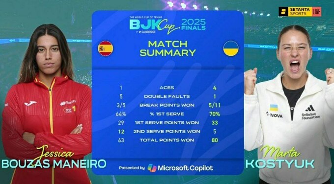 17 вересня стартувало матчеве протистояння 1/4 фіналу Кубка Біллі Джин Кінг 2025 між збірними Іспанії та України.