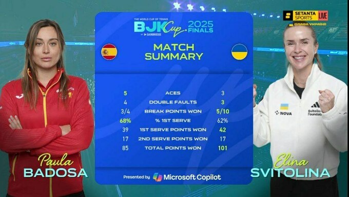 17 вересня відбулося матчеве протистояння 1/4 фіналу Кубка Біллі Джин Кінг 2025 між збірними Іспанії та України.