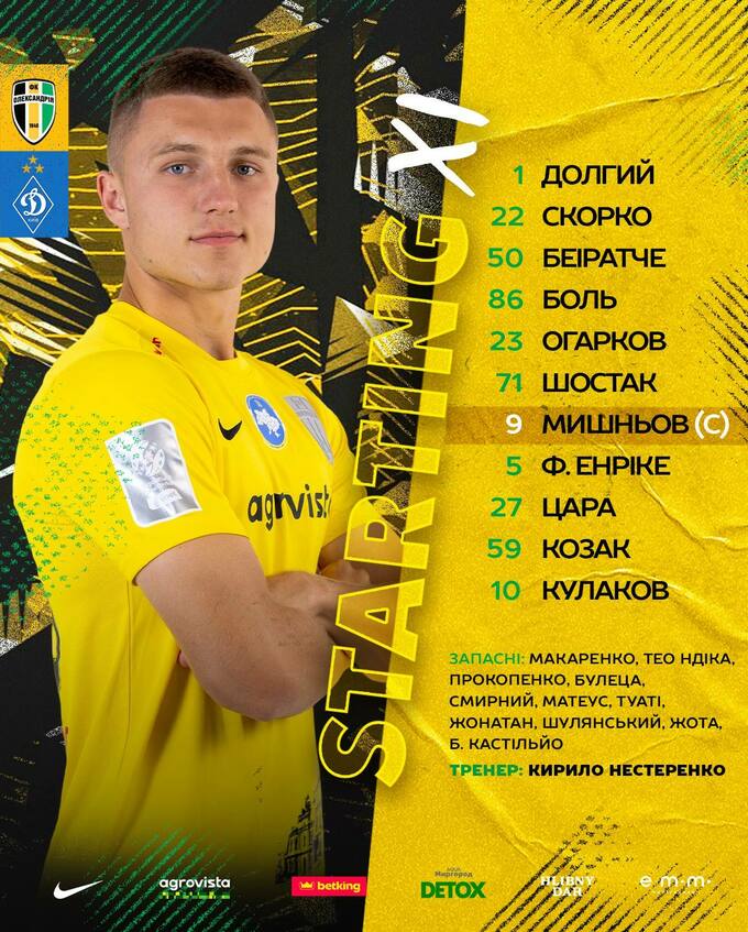 Кубок України: оприлюднено стартові склади на матч Олександрія – Динамо