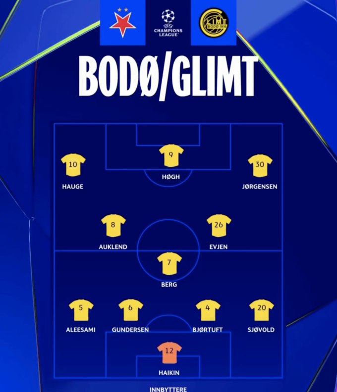 «Буде-Глімт»: хайкін, Шеволд, Бйортуфт, Гундерсен, Алесамі, Ев'єн, Берг, Аукленн, Йоргенсен, Гег, Гауге