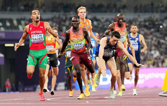 Об’єктом сенсації у вирішальному забігу став на ту мить ще чинний чемпіон світу Джош Керр з Великої Британії. Через травму ноги він після 900 метрів дистанції почав суттєво відставати від решти учасників і в підсумку фінішував останнім, 14-м. А виграв цю феєрично-багатостраждальну дисципліну, вперше ставши чемпіоном світу, 26-річний португалець Ісаак Надер. Набігши на фініш, Ісаак всього на дві сотих секунди випередив переможця першості планети-2022 Джейка Вайтмана із Великої Британії.