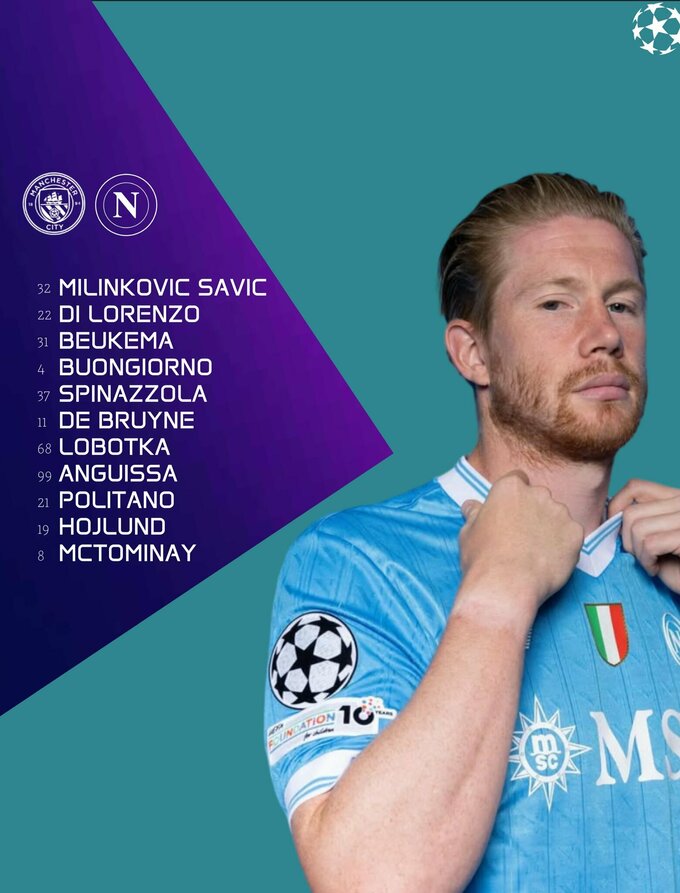 Ман Сіті та Наполі оголосили стартові склади на матч Ліги чемпіонів