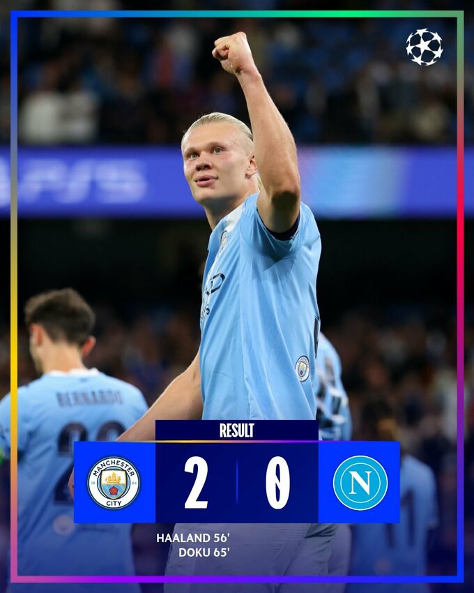 У центральному матчі дня Манчестер Сіті переграв Наполі (2:0) завдяки голам Ерлінга Холанда та Жеремі Доку.