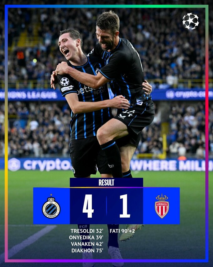 18.09. 19:45 Брюгге (Бельгія) – Монако (Франція) – 4:1