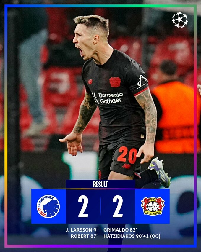 18.09. 19:45 Копенгаген (Данія) – Байєр (Німеччина) – 2:2