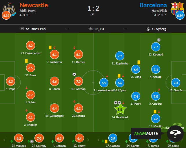Оцінки WhoScored за матч Ньюкасл – Барселона (1:2)