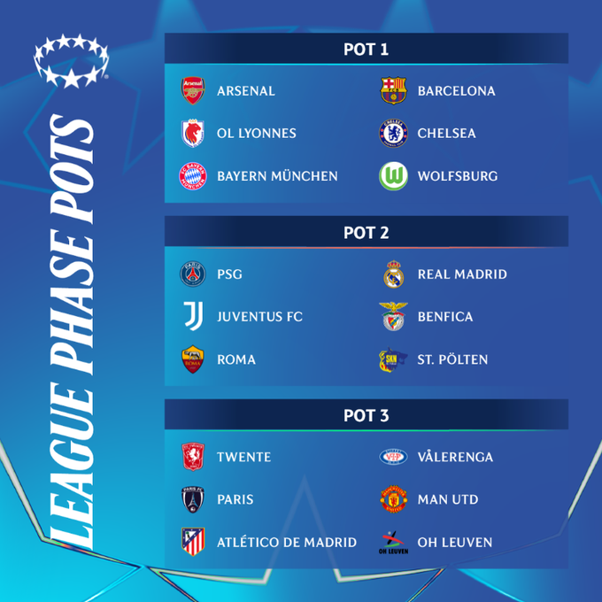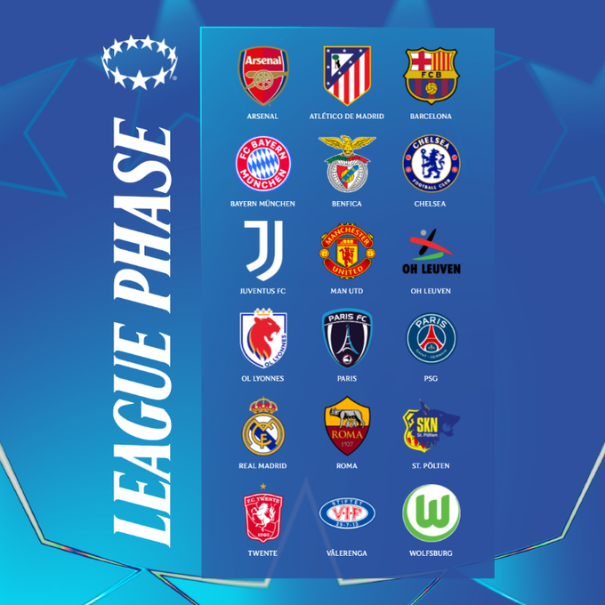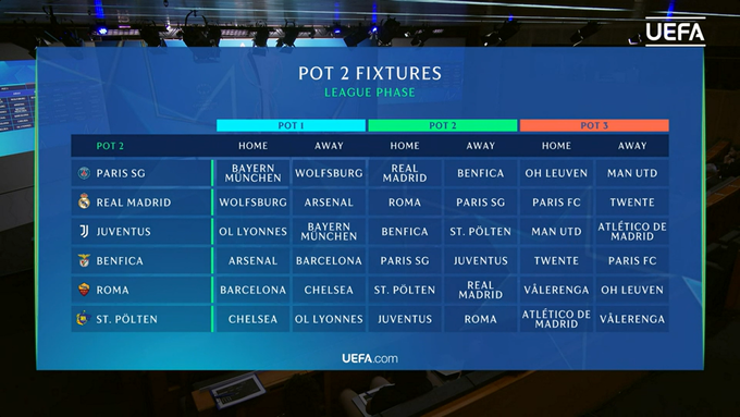 18 команд отримали суперників у 6 турах, вестиметься єдина таблиця, як у чоловічій ЛЧ.