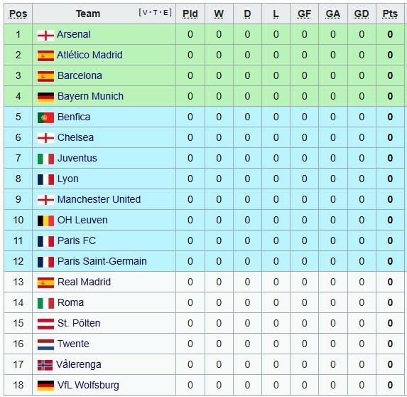 - Ліон: Вольфсбург, Арсенал, Санкт-Пельтен, Ювентус, Атлетіко, Ман Юнайтед