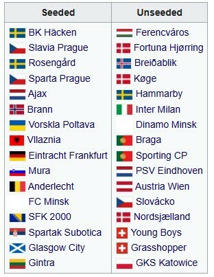 - Хеккен (Швеція), Славія Прага (Чехія), Русенгорд (Швеція), Аякс (Нідерланди), Спарта Прага (Чехія), Бранн (Норвегія), Ворскла Полтава (Україна), Влазнія (Албанія), Айнтрахт Франкфурт (Німеччина), Андерлехт (Бельгія), Мура (Словенія), мінськ (білорусь), СФК 2000 Сараєво (Боснія і Герцеговина), Спартак Суботиця (Сербія), Глазго Сіті (Шотландія), Гінтра (Литва)