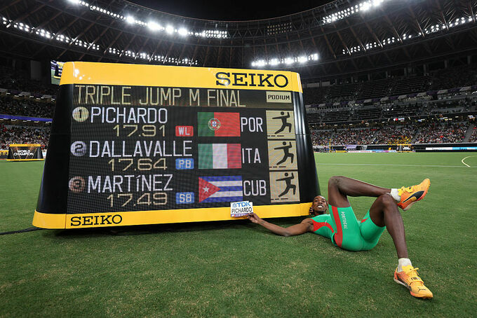 Але легкої перемоги в Пічардо одначе не вийшло. Хоча попервах, коли він у другій спробі стрибнув на 17,55 і захопив лідерство, здавалося, що конкуренти закуситися з португальцем не зможуть. І ось у мить, коли все йшло до спокійного золота Педро, в останній спробі на 17,64 м вилетів той, від кого очікували чи не найменше – 25-річний італієць Андреа Деллавалле, найвищим досягненням якого до цієї миті було срібло ЧЄ-2022 і особистий рекорд якого рівнявся 17,25. Запахло сенсацією, але Пічардо показав, що не дарма є світовим лідером у цій дисципліні. Він зміг зібратися на останній стрибок і полетів у район на 18 метрів – на 17,91. Деллавалле лише розвів руками, а Педро ходив і пихато запитував у камеру: «Хто тут чемпіон?»