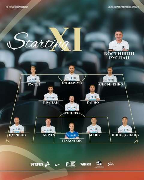 «Колос»: Пахолюк – Цуріков, Бурда, Козік (Бондаренко, 87), Понєдєльнік – Ррапай (Салабай, 87), Теллес, Гагнідзе – Гусол (Кане, 69), Климчук (Оєвусі, 69), Алефіренко (Третьяков, 68).