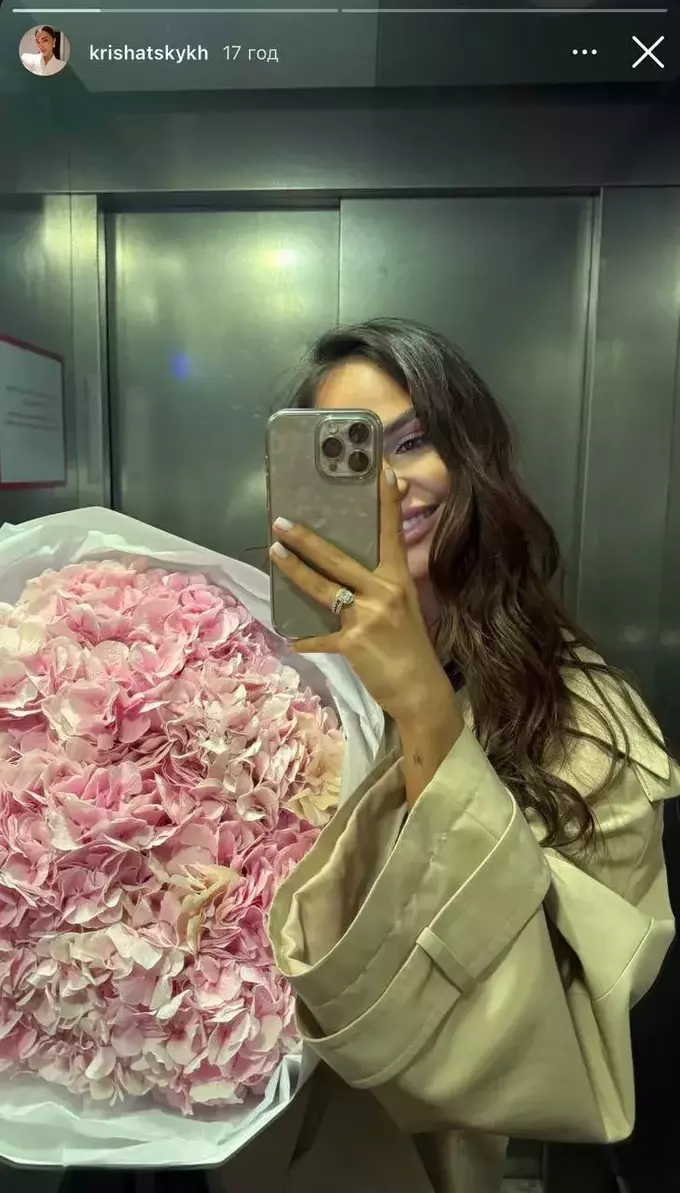 Кохана півзахисника київського «Динамо» Миколи Шапаренка поділилася фото у ліфті з величезним букетом ніжно-рожевих гортензій.