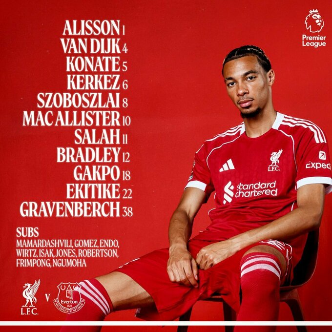 Стартові склади на матч «Ліверпуль» – «Евертон»: