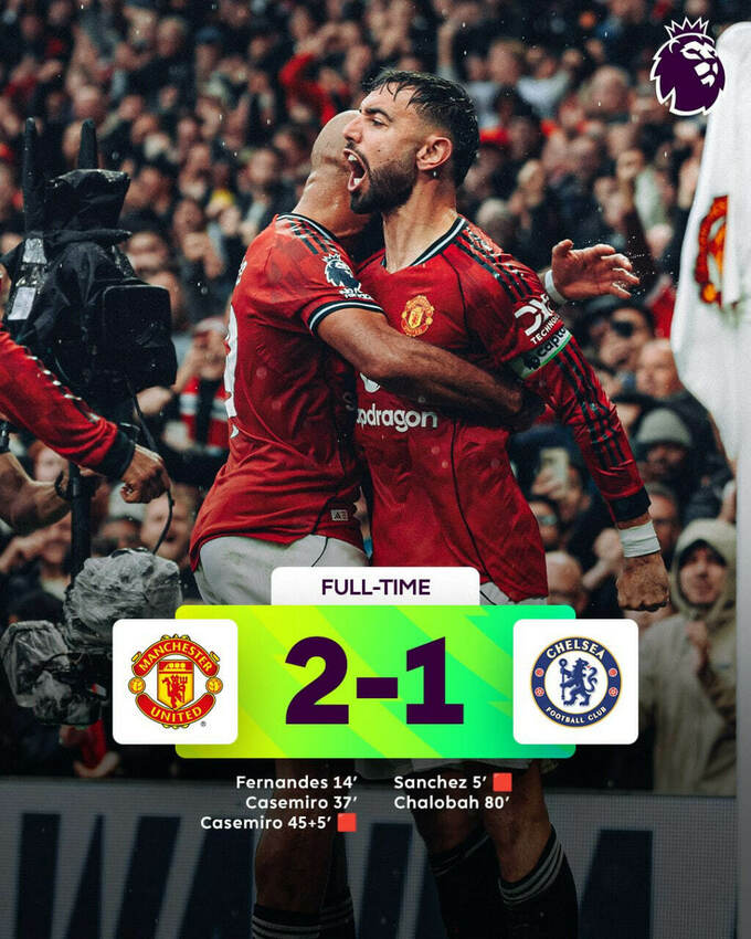 Червоні дияволи скористалися чисельною перевагою і забили два м'ячі в першому таймі. Ворота гостей вразили Бруну Фернандеш і Каземіро.