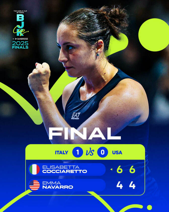 Коччаретто принесла збірній Італії перше очко. Другою грою заплановано матч лідерів – Жасмін Паоліні та Джеcсіки Пегули.