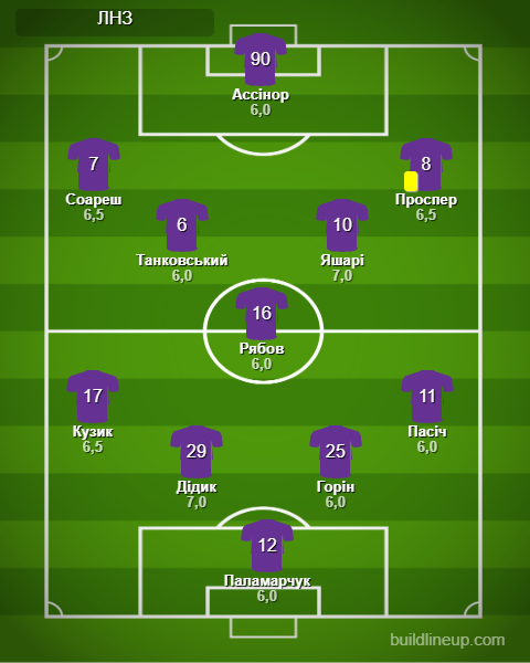 ЛНЗ: Паламарчук – Кузик, Дідик, Горін, Пасіч – Рябов – Соареш (Беннетт, 62), Яшарі (Нонікашвілі, 79), Танковський (Пастух, 62), Проспер – Ассінор (Кравчук, 86)