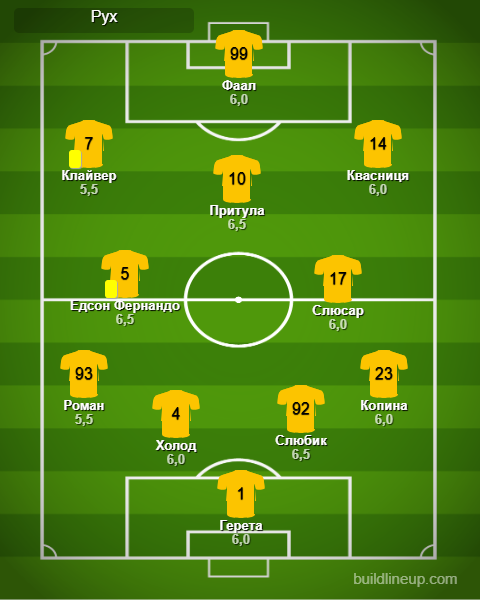 «Рух»: Герета – Роман (Лях, 68), Холод, Слюбик, Копина – Едсон Фернандо, Слюсар (Райляну, 46) – Клайвер (Кітела, 46), Квасниця (Руніч, 83), Притула – Фаал (Квас, 89)
