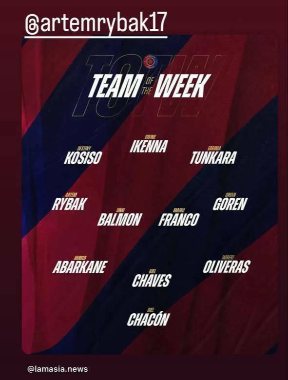 Півзахисник іспанської «Барселони» U-16 та збірної України U-16 Артем Рибак потрапив у символічну збірну першого туру іспанської Ла Ліги U-16.