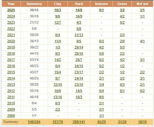У 2025 році Еліна встигла провести 51 матч. На рахунку Світоліної 36 перемог і 15 поразок. Також вона чотири рази здолала суперниць з першої десятки рейтингу WTA.