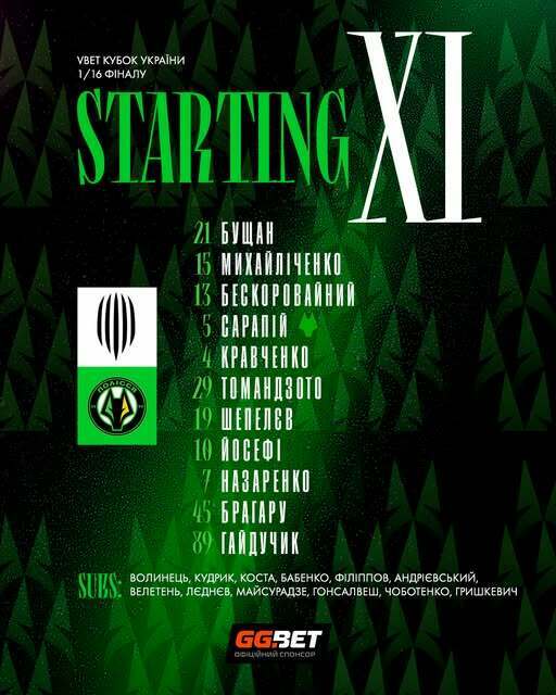 Запасні: Волинець, Кудрик, Таллес, Майсурадзе, Гонсалвеш, Чоботенко, Гришкевич.