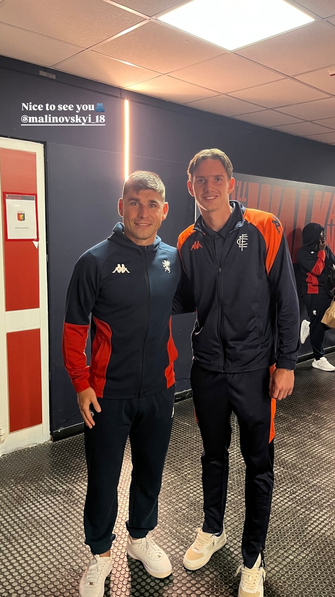 Півзахисник «Дженоа» та збірної України Руслан Маліновський потрапив до заявки команди, але не отримав ігрового часу. Після фінального свистка обидва українці зустрілися на стадіоні та опублікували спільне фото.