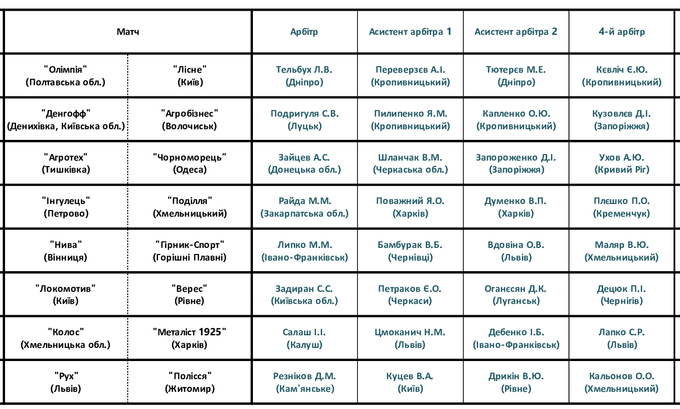 Призначено суддів на матчі 1/16 фіналу Кубка України.
