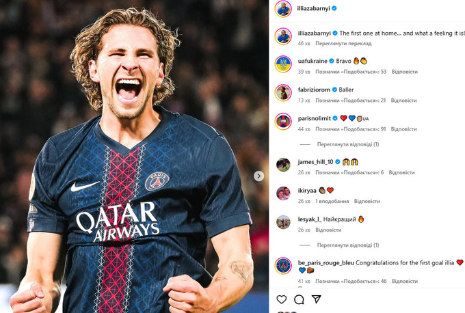 Захисник ПСЖ та збірної України Ілля Забарний відзначився дебютним голом у складі парижан.